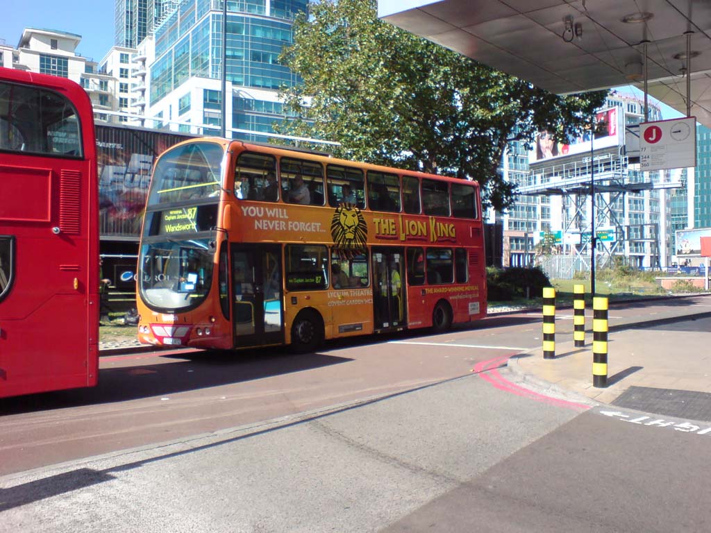The new contract for the 87 incorporated a modest frequency increase, and the main allocation of existing PVLs was topped with with two new buses, E38 and E39, the last of which is seen at the Aldwych terminus. The E allocation has subsequently expanded, the main allocations being to routes 196 and 24, but it is understood that the destination blinds on the Es have been altered and can no longer display 87, even though the type is are scheduled on the route!