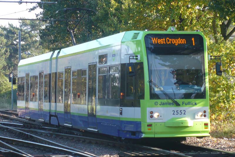 Now the route between Elmers End and Woodside has been converted to tram operation, although the section to Addiscombe has been abandoned. 2552 is seen here at Arena on the former railway alignment, just crossing the junction where the new branch to Beckenham joins.