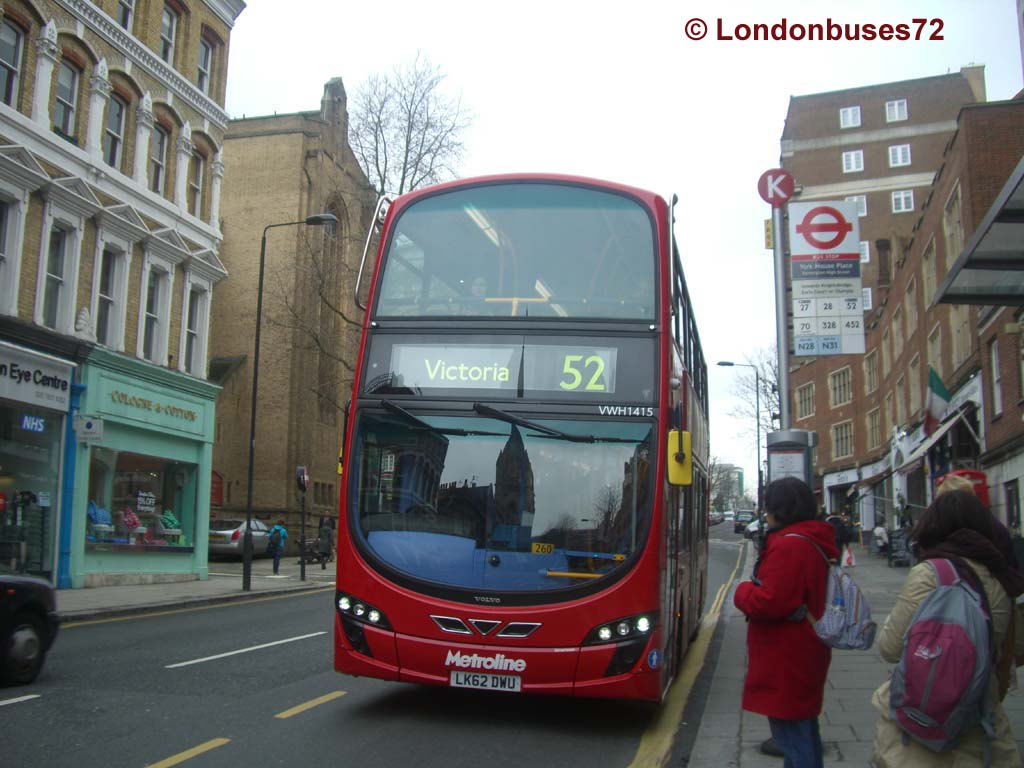 These photos have been selected partly because they cover a good range of the route, and VWH1415 (LK62 DWU), which completes the set, is at Kensington Church on 11 April 2013.