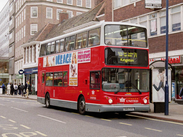 The SPs replaced older TA class Tridents, many of which are still liable to appear on the 71 from time to time. I have therefore retained the previous photograph for the time being, although it is not entirely authentic, as most of the buses have lost their grey upper deck relief and all now sport Transdev brands rather than the traditional London United crest – although the latter may be set to make a return! TA206 (SN51 SYE) was photographed at exactly the same location on 6 March 2002, a couple of months before the formal conversion from MCW Metrobus, being one of an earlier batch delivered for routes 131 and 267. See if you can spot the changes to the scenery between the two photographs – it seems the "To Let" boards are as prolific as ever!