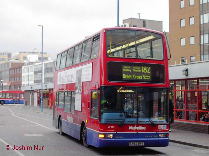 The trunk 182 across north west London has recently had a type change from Dennis Tridents to Volvo B7TLs. Metroline regularly re-shuffles its buses between garages, the aim being to standardise types at each garage as far as possible. Harrow Weald (HD), which runs the 182, previously had a mixture, but the loss of route 24 at Holloway meant that VP class vehicles based there could be moved to HD to replace the TAs, which are due shortly to convert route 210 (at Perivale garage) to double deck.