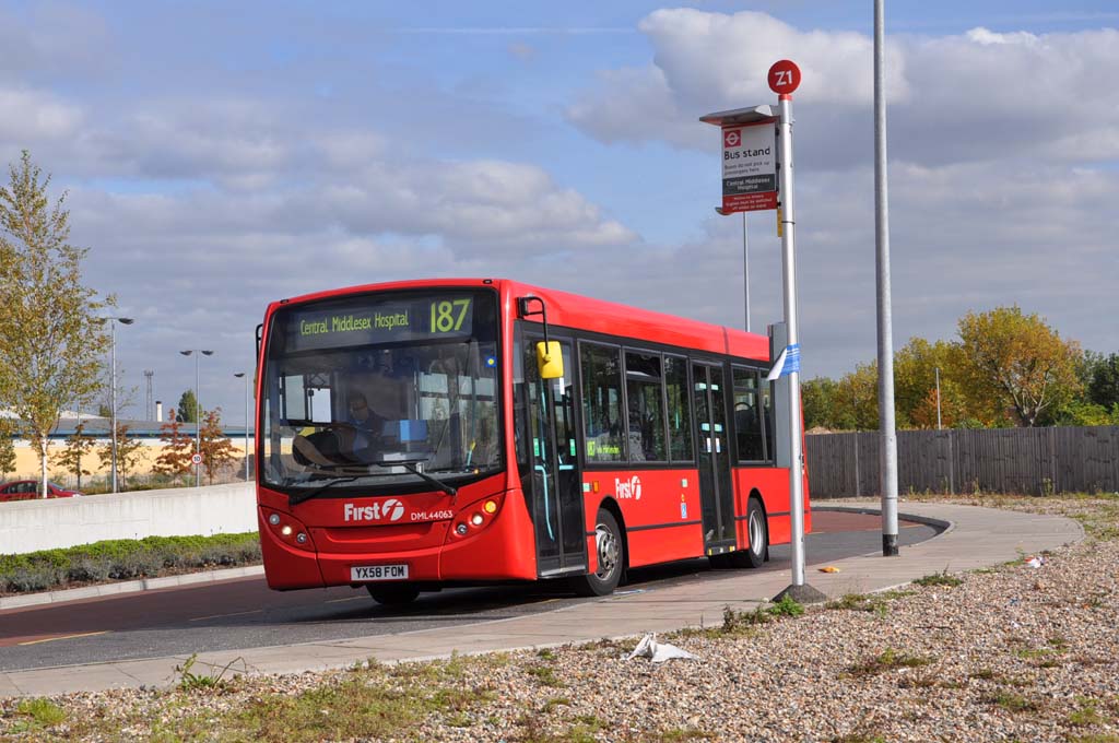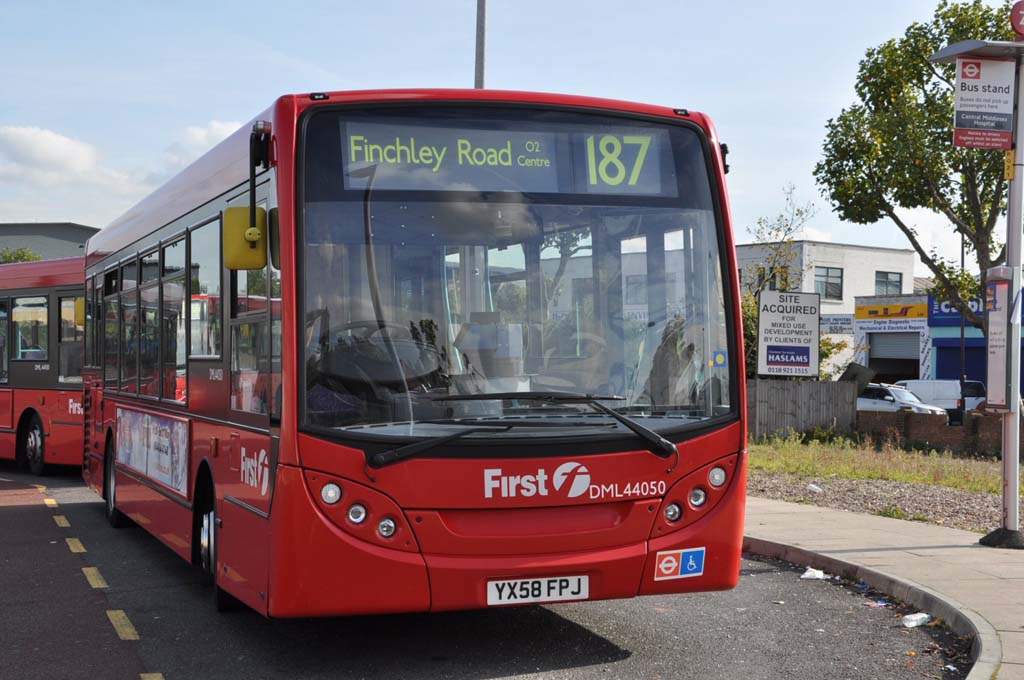 As noted on the 487 page, following management difficulties at Metropolitan Omnibus, it was sold to Thorpes (which have in turn was sold to Metroline, from which the 187 and 487 were won in 1999!). However, Thorpes continued to have difficulties with the routes and surrendered them early. They were re-tendered by TfL and won by First Centrewest using DM class Marshall Capitals DMs, as mentioned above, initially models cascaded from the 28/31/328 which had just been converted to double deck, and offering substantially fewer seats than the B6LEs. These were supplemented by a few DMLs that were available. Operation has been from Willesden Junction from the outset.