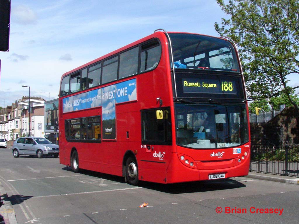 Walworth garage has a sizeable allocation of conventionally engined Enviro400s and 9428 (LJ09 CAA) is at Surrey Quays on on Thursday 6 May 2010