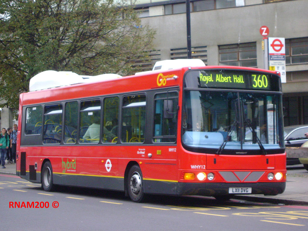 WHY1 (LX06 ECN) is one of the original vehicles, and was seen after rebuild and relivery at Elephant & Castle on 13 October 2011. The choice of WHY for the class code is a bit peculiar – it is meant to mean Wright HYbrid, but may well start people asking questions instead, such as why they are there, why they were so late etc. ...!