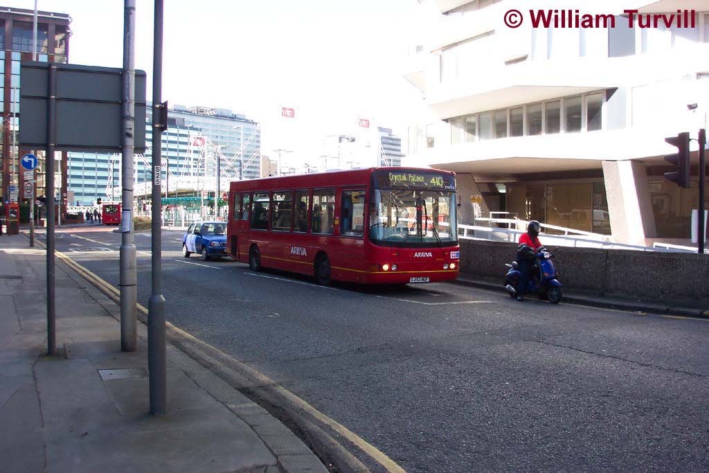 Running much more frequently than its predecessors, the route has been a victim of its own success. It is unfortunately restricted to small buses due to various tight turns on the eastern end of the route. There are two double runs off Davidson Road (apparently only because it is not practicable to site bus stops on Davidson Road itself), and also narrow roads in the Sylvan Road area. The Wallington end could be improved relatively easily by restoring the 403, but it is actually the eastern end of the 410 that seems to be suffering the most, as it serves quite a substantial population which is fairly remote from other bus services. The Harris Technology College, near Crystal Palace, is also a major source of passengers.