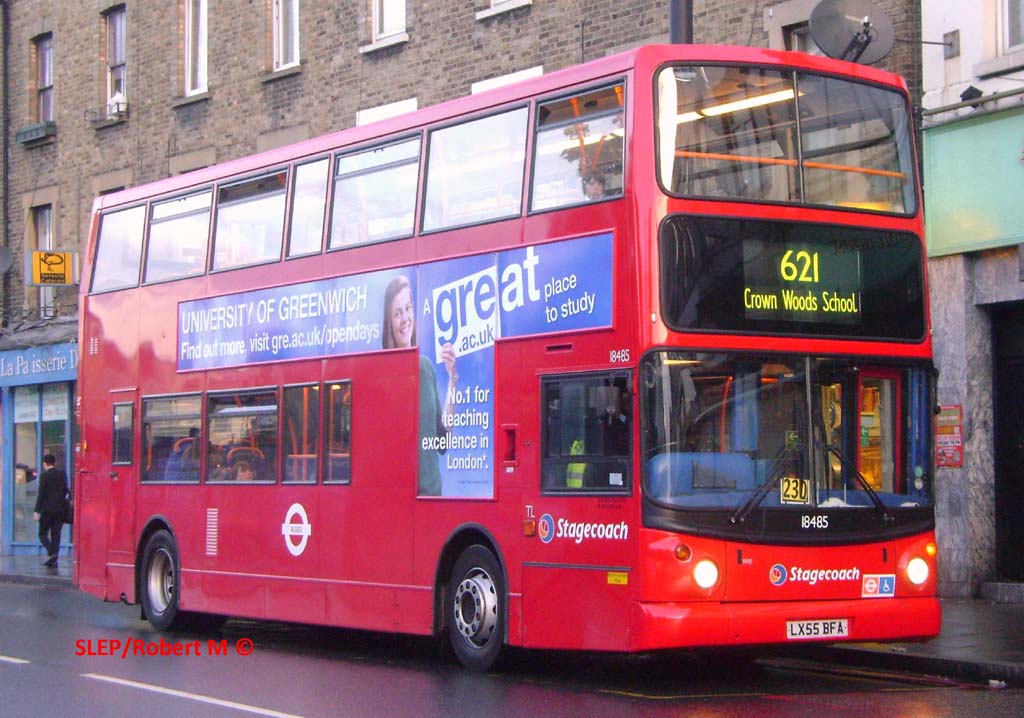 The normal allocation is a Trident, and although the running number of TL230 is from the route 47 sequence it does not actually work on the 47 – in fact, the bus goes onto route 136 after working the afternoon 621. The bus featured here (18485 – LX55 BFA) is however from the batch of Tridents new for route 47 – the last ALX400 bodies built for London use, I believe, and certainly the last for Stagecoach. It is seen in Lewisham on 18 October 2012.